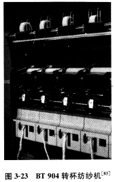 2002年,Rieter—Bastex公司(即立達(dá)一捷克)開發(fā)了可紡制彈力包芯轉(zhuǎn)杯復(fù)合紗的轉(zhuǎn)杯紡紗機(jī)BT904[83-85],它綜合了原捷克斯洛伐克的專利研制而成,如圖3—23、3—24所示。