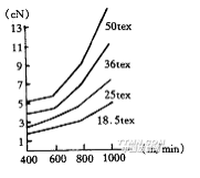 生產中,整經速度的提高可提高設備效率,但也會增加整經張力及整經張力不勻,從而增加整經斷頭,惡化整經質量,降低整經設備效率。圖2-15表明,隨整經速度提高,氣圈頂