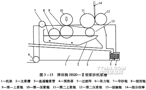 國內使用較多的津田駒HS20一Ⅱ型漿紗機的漿槽如圖3—13所示。