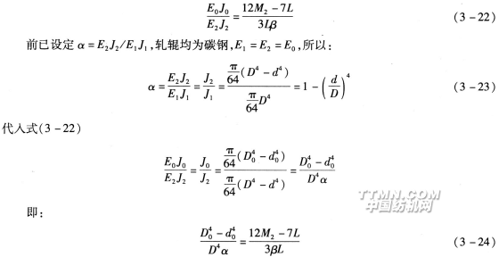 聯解式(3—24)、式(3—25)可求得α值和β值,再代入式(3—23)求得中固輥的內徑d。