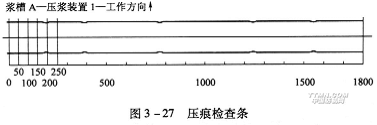 在壓印紙上注明前進方向、漿槽和壓漿裝置的號碼。每隔5cm測量一下壓痕的寬度,將測量值填入一個圖表,如圖3—28所示。