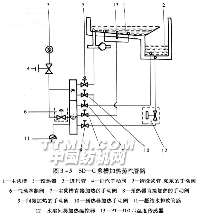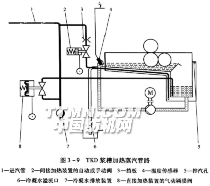 漿槽中漿液由蒸汽加熱,如圖3—5所示,包括兩個系統。