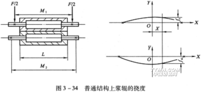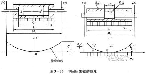 根據式(3—17)、式(3—18)、式(3-20)、式(3—21),上軋輥,即中固壓漿輥的最大撓度: