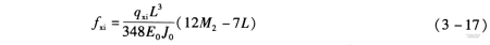 如圖3—34所示,上漿輥可看做兩端支撐的簡支梁,假定受均布載荷qxi,不計剪力對撓度影響,則最大撓度fxi根據材料力學應為: