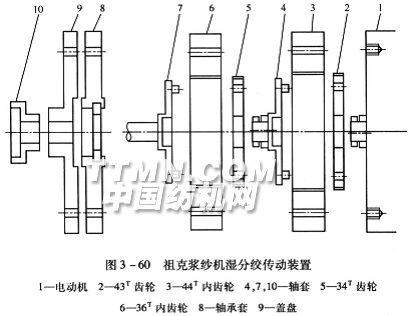 圖3—60所示為祖克漿紗機濕分絞傳動裝置的結構。