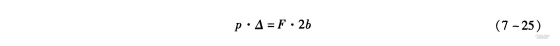 織軸受壓紗輥擠壓力p,形成寬度為2b的擠壓區。中心距移近△,實際也就是織軸半徑R1在擠壓區中的最大壓縮量。設織軸與壓紗輥緊壓滾過擠壓區的切向平均阻力為F。根據摩擦理論,滾動圓柱體在壓力p作用下,中心移動△的功和它以平均阻力F滾動2b擠壓區的功是相等的,即: