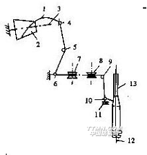 7-導紗器8-導紗鉤9-紆管10-主動錠桿11-被動錠桿