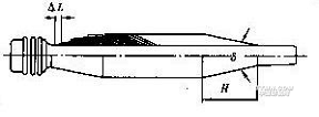 紆管的端部是一個錐體,錐頂角δ大,則退解阻力小,但易脫圈,一般棉織用紆管錐角為20~24°,絲織為12~13°。因此,紆子的卷繞相當于在錐形筒子上的短動程卷繞,緯紗每卷繞一個往復動程,在級升運動的作用下,導紗器向紆管的頂端移動一段距離,直至整個紆管繞滿紗線,紆子的卷繞結構如圖5-5所示。