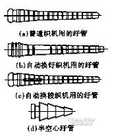 (c)自動換梭織機用的紆管(d)半空心紆管