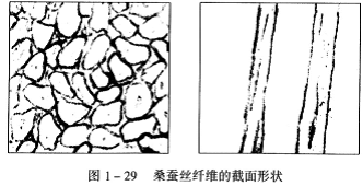 紬絲原料為絹紡廠的精落綿,其橫截面如圖1—29所示,線密度為1.35—1.68dtex,主體長度在30mm左右,長絲為60mm以上,短纖維為16mm以下,并且短纖維含量在25%-30%,含雜率在10%左右,主要是碎蛹屑(皮)、草屑、綿粒等。納絲纖維長短差異大、含雜率高、強力低、纖維柔滑,在紡紗過程中與高速旋轉的機件摩擦后易產生靜電,所以,給紡紗帶來一定難度。紬絲紗是近十幾年才開發出的新紗種,因為紡制這種紗的廠家較少,工藝還在摸索階段,尚未成熟,所以下面提供的工藝技術措施僅供參考。