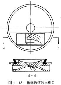 (2)為了使棉纖維更好地轉移和有序地流動,輸棉通道內氣流必須有加速流動的趨勢,氣流加速的梯度越大,對棉纖維的轉移、伸直和舒展越有利,所以,輸棉通道入棉口大而出棉口小,如圖1—18所示。抽氣式轉杯紡輸棉通道的入棉口和出棉口懸殊更大。