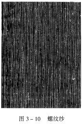 在日常生產(chǎn)中,有時會出現(xiàn)螺紋狀紗條,通常把這種紗稱為螺紋紗。有人也把螺紋紗稱為“鋸齒紗”或“麻花紗”,如圖3—10所示。