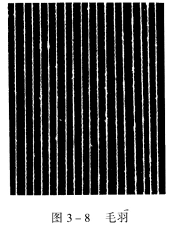 毛羽就是在紗條表面顯露著較多的棉纖維,從黑板條干上看如同紗條上長滿了絨毛,如圖3—8所示。轉(zhuǎn)杯紡紗條上產(chǎn)生較多毛羽有以下幾種原因: