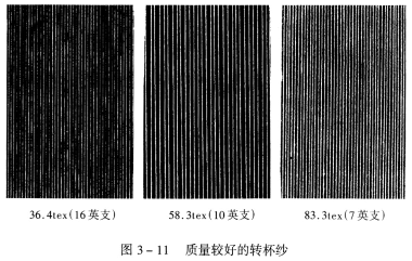 轉(zhuǎn)杯紡生產(chǎn)出的質(zhì)量較好紗條條干如圖3—11所示,轉(zhuǎn)杯紡成紗出現(xiàn)質(zhì)量問題的主要原因如下。