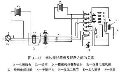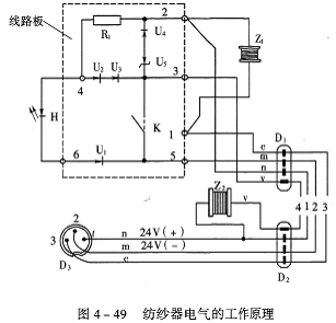 紡紗器線路板及線路之間的關系,如圖4—48所示,其工作原理女口圖4—49所示。