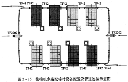 (5)當梳棉機配臺數多于8臺時,建議采用TF2202型配棉三通
