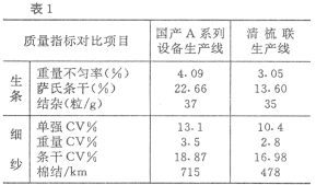 該套中外結合的清梳聯生產線,在吸收國外先進成熟技術的同時,大膽采用國內領先技術的高產梳棉機和除塵設備。1994年4月投產以來,設備運行可靠,故障率低,生條質量優于傳統工藝,是紡織企業技術改造的理想機型。但也存在一些問題。