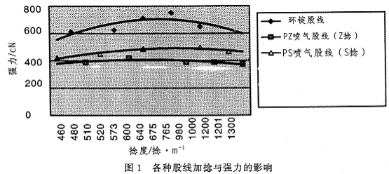 (1)純棉噴氣單紗合股有利于改善其單紗在強力方面的不足,不同的加捻方向