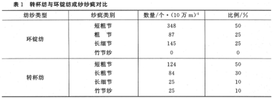3轉杯紡與環(huán)錠紡紗疵的比較分析