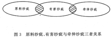三者之間的關系從圖3反映出來:有害紗疵中既有原料紗疵又有牽伸紗疵;原料紗疵里雖然存在有害紗疵,但數量較少;牽伸紗疵里存在有害紗疵,而且分布的數量較多。所以,在轉杯紡過程中減少有害紗疵和牽伸紗疵是保證成紗質量的關鍵。