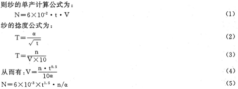 從(5)式可以看出,轉(zhuǎn)杯紗產(chǎn)量與轉(zhuǎn)杯轉(zhuǎn)速和紗的號(hào)數(shù)的1.5次方成正比。因此,提高
