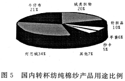 國內外轉杯紡純棉紗產品用途比例分別見圖4、圖5。