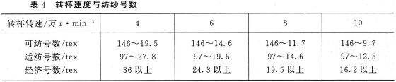 在這里特別需要指出的是,若花了大代價去購買國外先進高速的轉杯紡紗機,而實際上卻降低速度用來紡粗號紗,那是極不合理也不合算的,失去了引進先進設備的意義了。