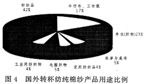 國外資料僅以德國Autocoro型轉杯紡紗機生產的純棉轉杯紗產品用途為例,其針織品份額已達42%(美國可
