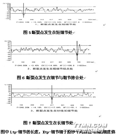 原紗斷裂點發生在紗的最細部分(短細節部分)紗的橫截面最小部分纖維根數最少,承受張力最低:(見圖5)