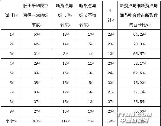 原紗細節與斷裂點之間相關程度試驗(表1)