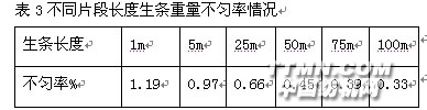一、如圖3所示梳棉機的自調勻整系統包括開環與閉環兩個系統 ,可控制長短片段的 重量不勻率及細紗的重量不勻及重量偏差,生條的長短片段不勻率是紡紗不勻率及支數偏差的基礎。開清棉的雙棉箱給棉箱給棉機除了自身已實現自調勻整均勻無回花連續給棉使梳棉機得到均勻供棉外,通過梳棉機本身的自調勻整的系統的工作,可使生條不勻率控制在1.5%以下。見表1、表2、表3