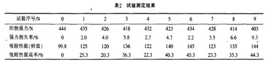 1.3.2 絲光工藝條件對織物吸附性能的影響根據表2試驗結果按照吸附性能進行統計分析.結果如表4所示。