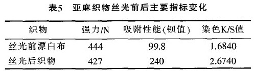亞麻織物絲光前必須具有比產品標準高的強力(一般大于295 N).以避免因絲光使織物強力指標不合格而降等。