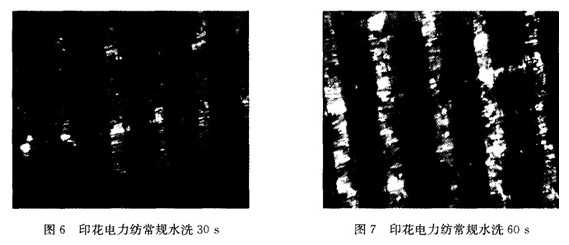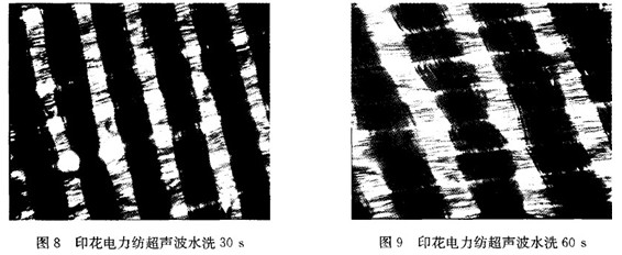 超聲波退漿水洗工藝優于常規水洗工藝,超聲波退漿水洗時間比常規水洗至少省時1/3,在水洗溫度較低的情況下就能達到常規工藝高溫水洗時的效果。因此利用超聲波進行印花織物的退漿水洗能有效提高水洗效率,節能減耗。