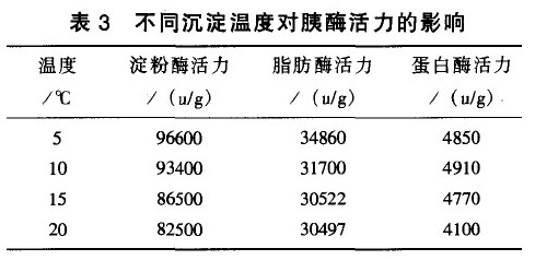 2.3 不同沉淀溫度對胰酶活力的影響