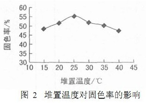 由圖2看出,亞麻織物冷軋堆染色的最適堆置溫度在25℃左右。為了減少車間環境溫度變化的影響,可施加簡易溫控,以達到較高的固色率。