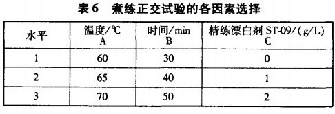 由于煮練酶B對果膠的去除效果總體上比煮練酶A好些,故選擇煮練酶B進行煮練。然后進行漂白工藝的優化。