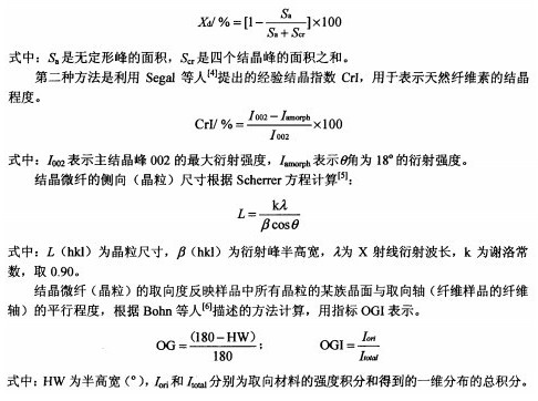 利用兩種方法計算結晶度。一種是分峰法,衍射曲線利用Lorentzian函數進行分峰,除了四個結晶峰101、101、002、040,無定形的結晶峰的最大值對應于101和002晶面之間的波谷。結晶度用以下方程計算: