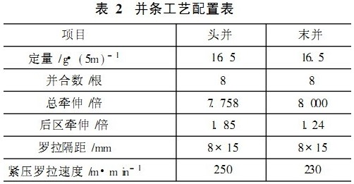 由于牛奶蛋白纖維和莫代爾纖維長度長,不含雜質(zhì),僅有少量絲束硬塊,故開清棉工序采用精細(xì)抓棉、以梳代打、多松少落!的工藝原則。為減少纖維損傷及打手返花,適當(dāng)降低打手速度,并跳過FA106B型鋸齒開棉機(jī),適當(dāng)提高風(fēng)扇速度,保證棉流的順利輸送。為防止黏卷和分層不清,采取加裝防黏粗紗、加大緊壓羅拉壓力等防黏措施。開清棉工序主要參數(shù):棉卷羅拉轉(zhuǎn)速為10r/min,棉卷定量為380g/m,定長為30.6m。