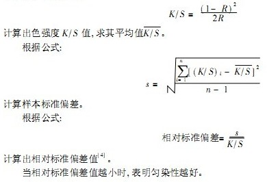 采用MSC1型多光源分光測色儀,測出織物最大吸收波長處8個點的反射率R值,然后根據庫貝爾卡蒙克公式: