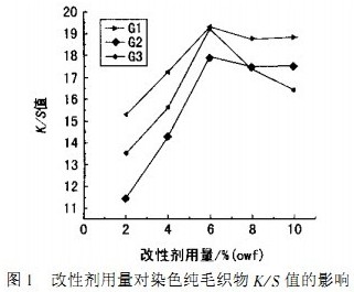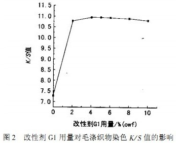 2.1改性劑對純毛織物分散染料染色K/S值的影響