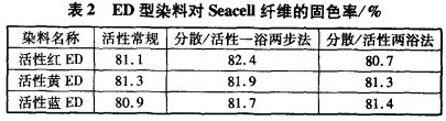 不同染色工藝下ED型活性染料在對Seacell纖維的固色率見表2。