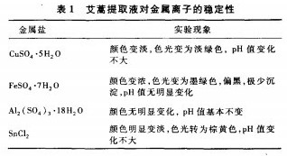 藥品:冰醋酸,碳酸鈉,結(jié)晶硫酸銅、硫酸亞鐵、硫酸鋁、氯化亞錫等(以上均為試劑),艾葉(武漢產(chǎn)新鮮艾葉)。