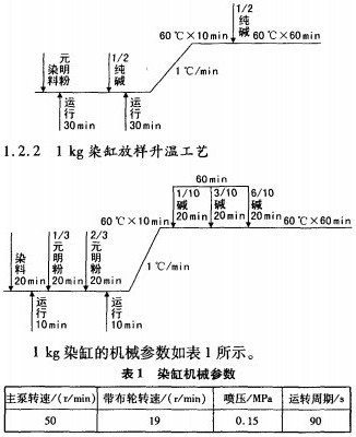 本公司采用1kg染缸對大生產的生產條件(包括升溫工藝、浴比、運轉時間等重要工藝參數)進行模擬,對化驗室配方進行檢查和修正,以期避免大生產風險,使大生產染色的一次成功率明顯提高,取得了良好的經濟效益。