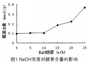 (1)在8g/LNaIO氧化條件下,與未堿預處理的氧化棉纖維相比,經NaOH濃度lOwt%以上預處理的氧化棉纖維醛基含量明顯增加。