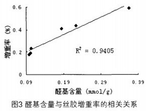 2.3氧化棉纖維的醛基含量與絲膠處理后增重率的關系