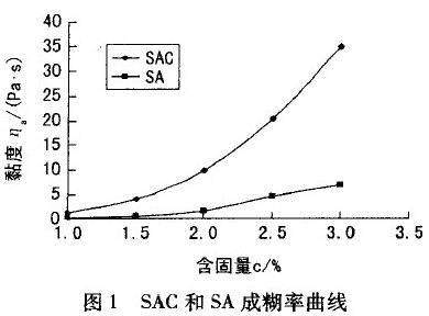 圖1所示為SAC和海藻酸鈉SA的成糊率曲線。