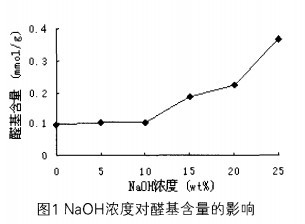 (1)在8g/LNaIO氧化條件下,與未堿預處理的氧化棉纖維相比,經NaOH濃度lOwt%以上預處理的氧化棉纖維醛基含量明顯增加。