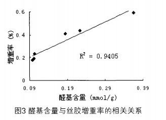 2.3氧化棉纖維的醛基含量與絲膠處理后增重率的關系