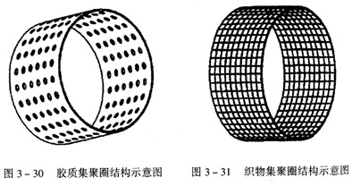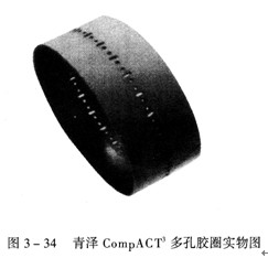 膠質(zhì)集聚圈(圖3—30,以下簡(jiǎn)稱膠質(zhì)圈)一般采用丁氰橡膠制成,與傳統(tǒng)的牽伸膠圈相同。但膠質(zhì)圈需要打孔,并對(duì)孔徑有要求,且孔多而密,因此要求其強(qiáng)度高,變形小,韌性大,而且所打的通氣孔設(shè)計(jì)頗有講究。膠質(zhì)圈一般是有接頭集聚圈。相對(duì)而言,膠質(zhì)圈采用的較少。